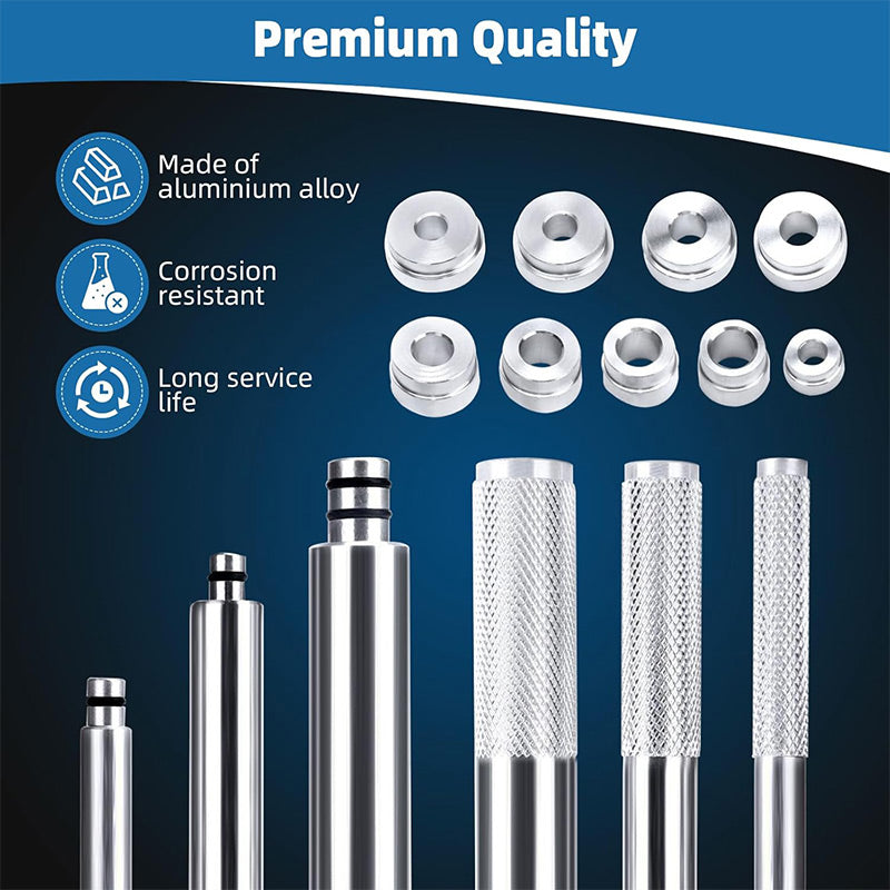 PRECISIE ONTWORPEN VOOR MOEITELOZE REPARATIESĀ :Ā Ā Deze gereedschapset is ontworpen met autoliefhebbers en professionals in gedachten en zorgt voor een probleemloze montage en demontage van lagers. De nauwkeurig vervaardigde constructie van aluminiumlegering garandeert duurzaamheid en betrouwbaarheid, waardoor zelfs de moeilijkste klussen beheersbaar worden.