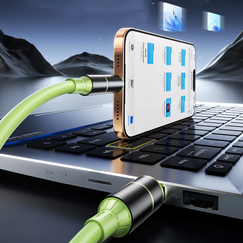 HOOGWAARDIGE SILICONEN CONSTRUCTIE: Gemaakt met een flexibele vloeibare siliconen mantel en een verdikte koperen kern. Dit ontwerp is bestand tegen klitten en breken, en biedt een duurzame, betrouwbare verbinding die dagelijkse slijtage doorstaat.
