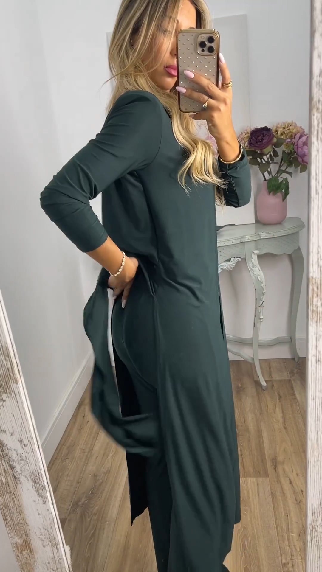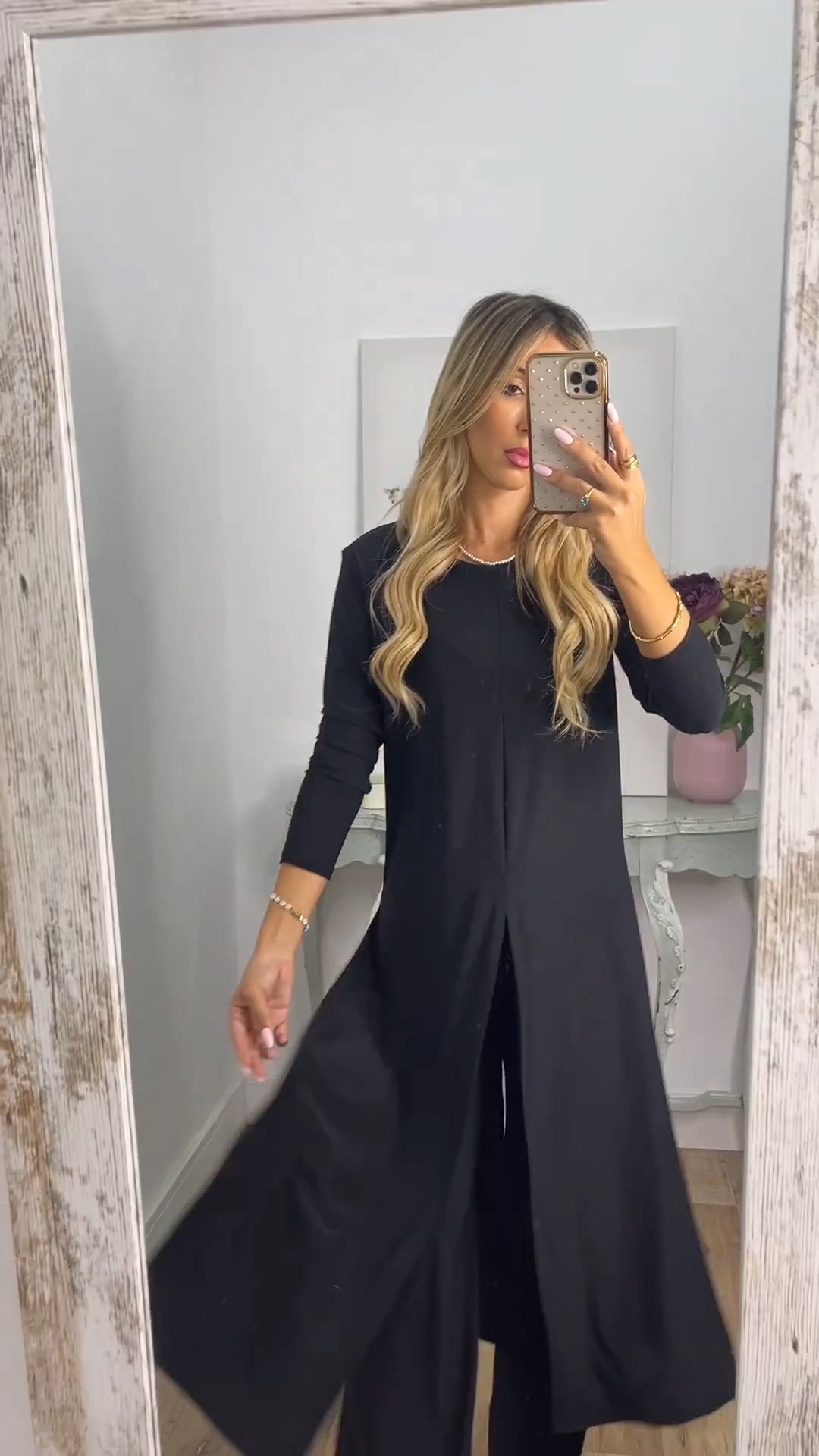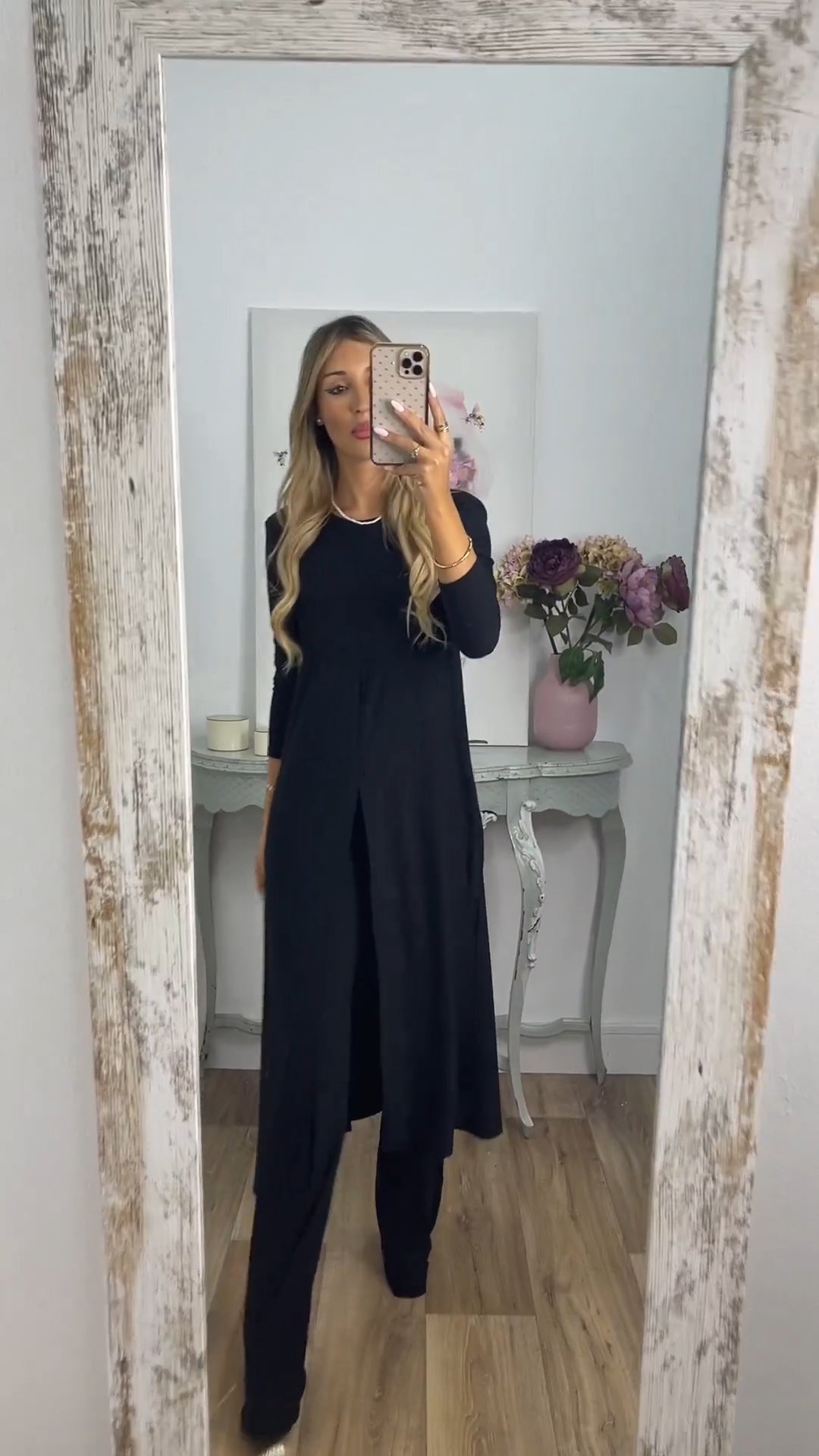 Elegant casual 2-delig pak met lange top en bijpassende broek