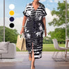 BLOEMENPATROON MET STREPEN: Deze jurk is een combinatie van bloemmotief en strepen die perfect de essentie van de zomer weergeeft. Het bloemmotief onderstreept je elegantie, terwijl de strepen een modieus accent toevoegen waardoor je in elke context opvalt.