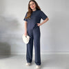 Inhoud: 1* Set van casual top met ronde hals en broek met trekkoord