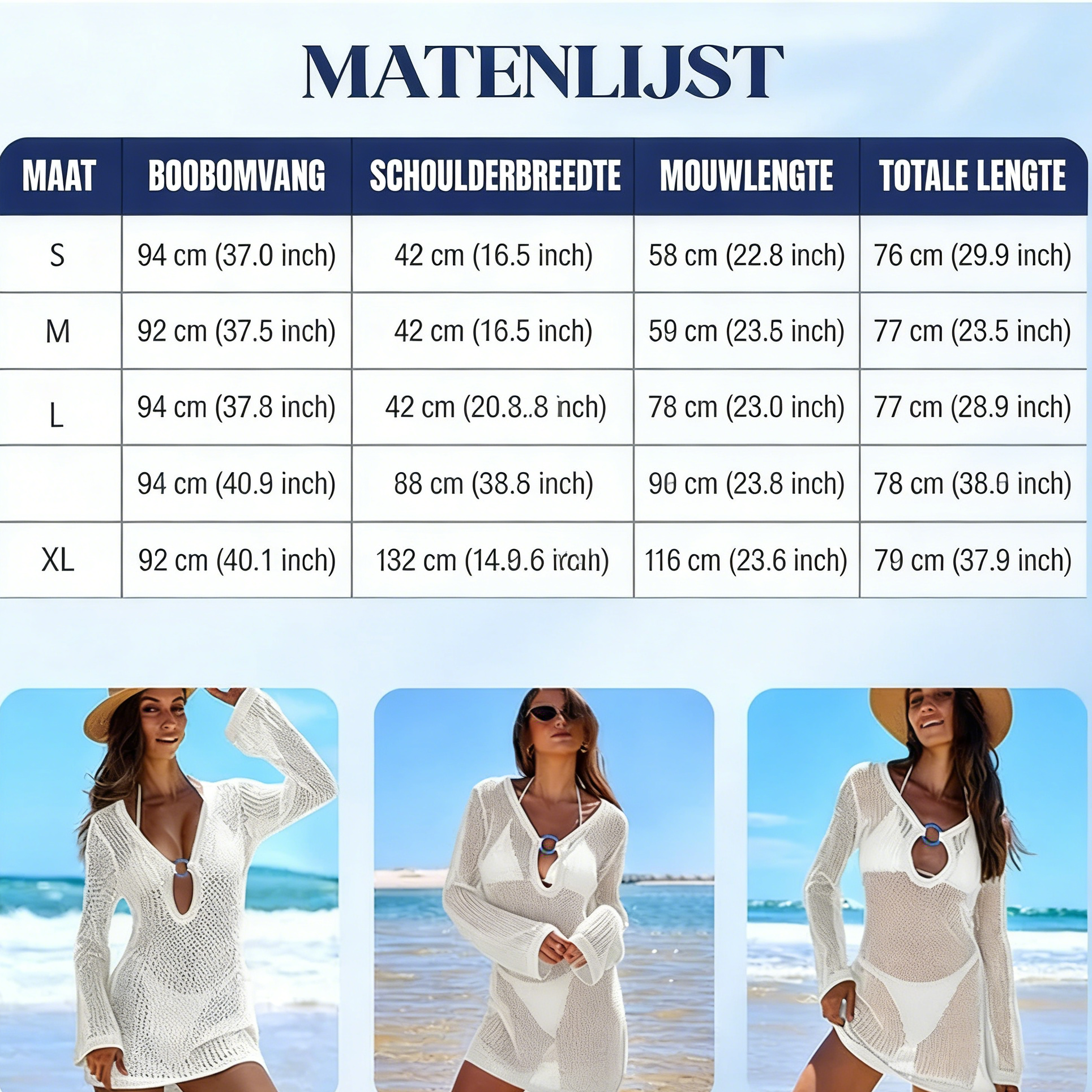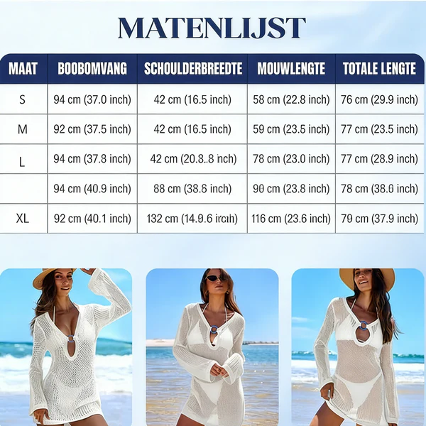 Luchtig gebreide stof – De los geweven, gehaakte look biedt uitstekend ademend vermogen en zorgt voor een koel en comfortabel gevoel in de zon. Het biedt lichte bedekking, terwijl badkleding er stijlvol onderdoor schijnt, voor een chique, zomerse look.