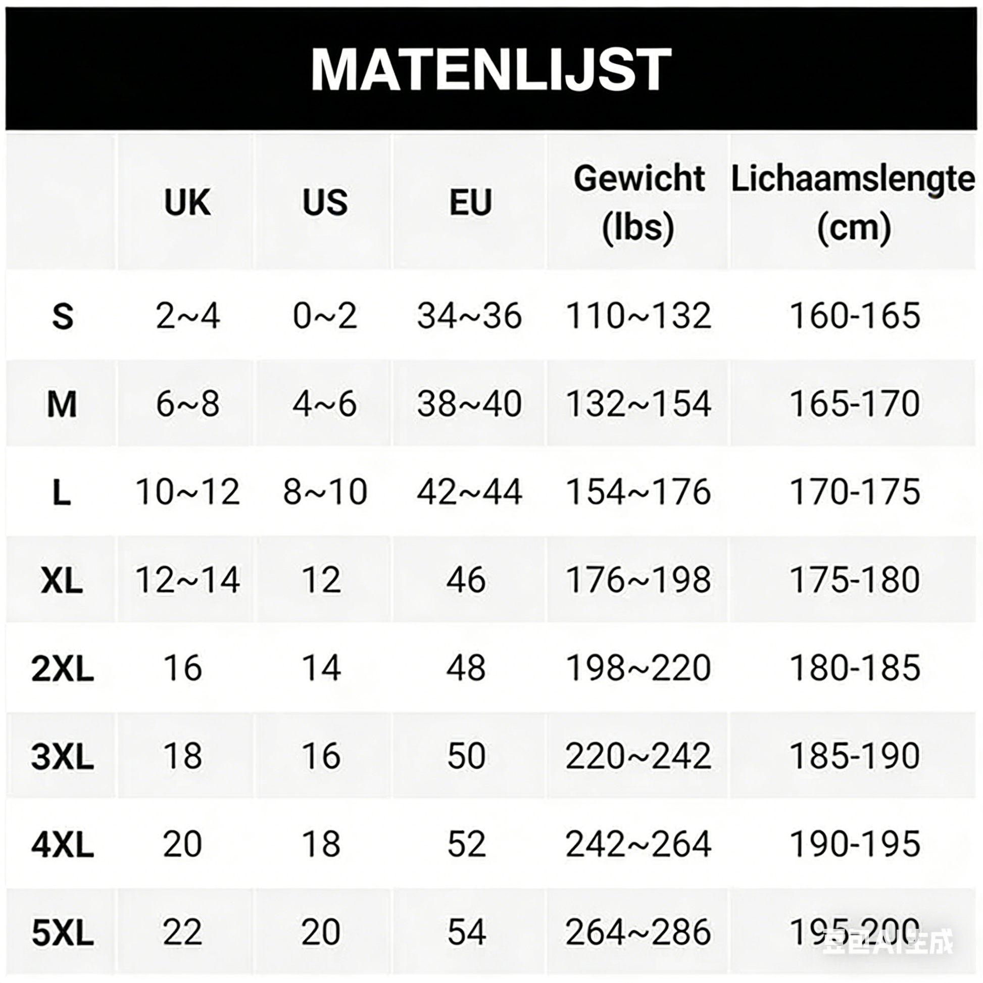 Maten: S, M, L, XL