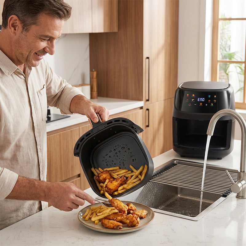 GROTE INHOUD VAN 6 LITER - Bereid moeiteloos maaltijden voor het hele gezin of voor gasten in één keer. De ruime mand biedt plaats aan een hele kip of grote porties voedsel, waardoor u tijd en moeite bespaart.