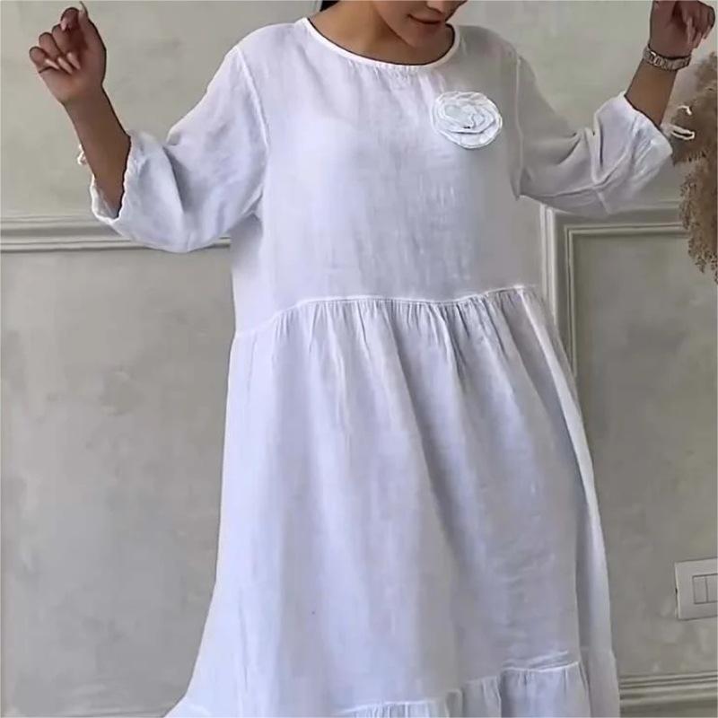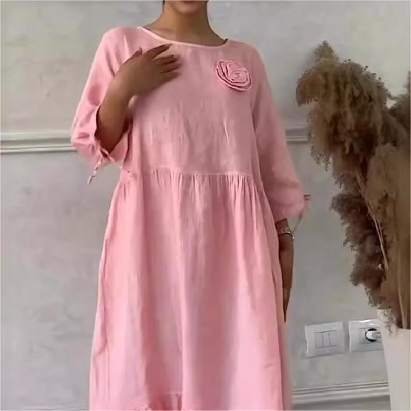COMFORTABELE RONDE HALS: Ontworpen met een klassieke ronde hals biedt deze jurk een comfortabele en veelzijdige halslijn die geschikt is voor verschillende gelegenheden. Het biedt een bescheiden maar stijlvolle uitstraling die gemakkelijk kan worden geaccessoriseerd.