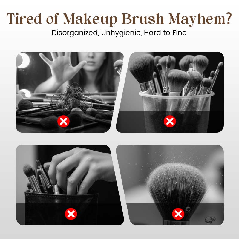 GROTE CAPACITEIT & GEORGANISEERD - Bewaar uw volledige kwastencollectie op één plek. Het ruime ontwerp met vier compartimenten is geschikt voor verschillende kwastformaten, houdt ze rechtop, georganiseerd en makkelijk te vinden, zodat uw kaptafel opgeruimd blijft.
