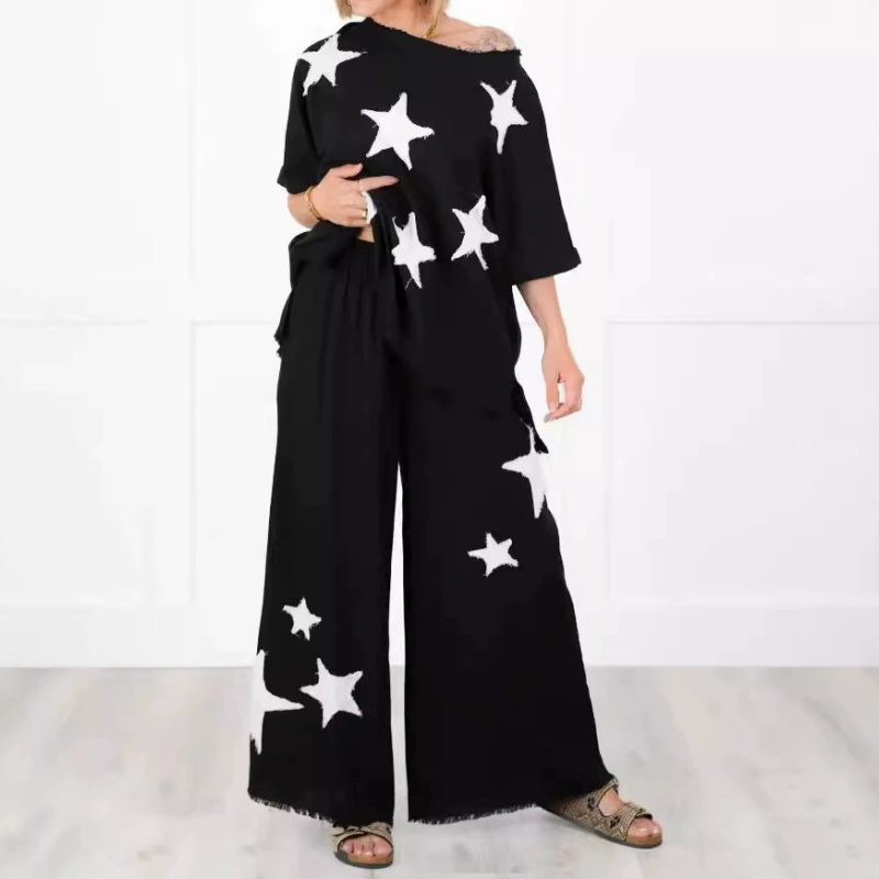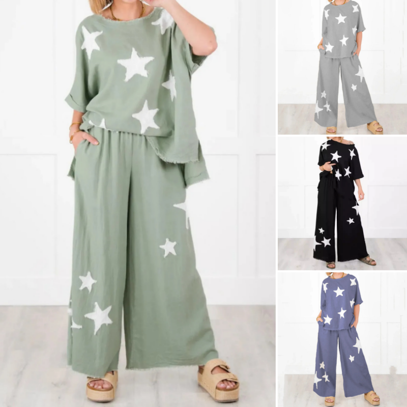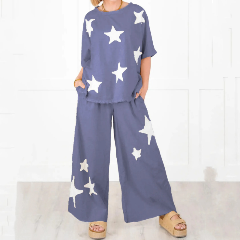 Inhoud van de levering: 1 * Twee-delige dames set met sterpatch en korte mouwen