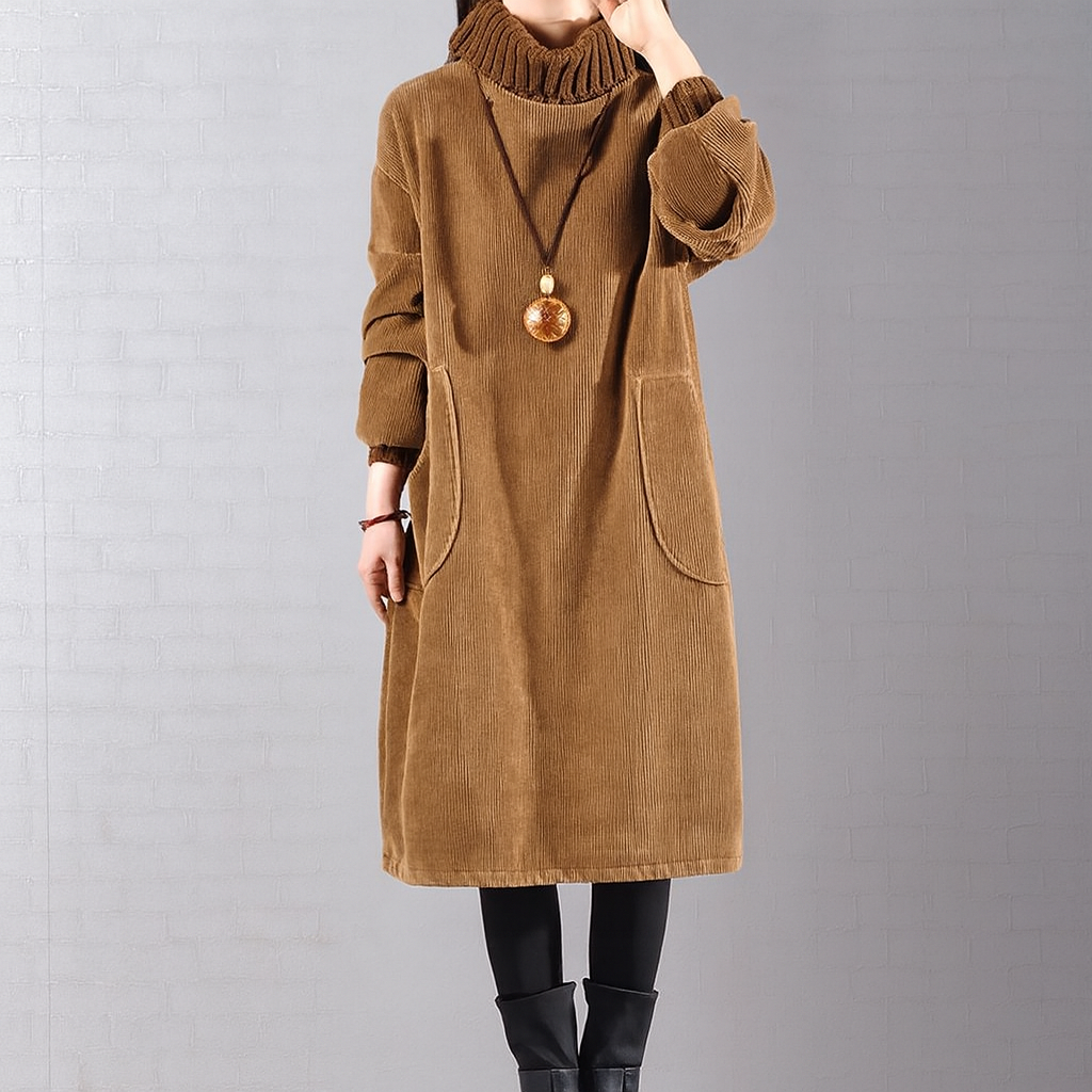 Pakket bevat: 1* losvallende maxi-jurk met hoge hals voor dames van corduroy