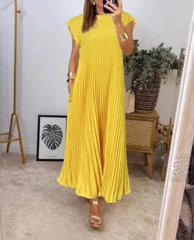 š„HOT SALEš„ Mouwloze geplooide eenvoudige effen kleur jurk