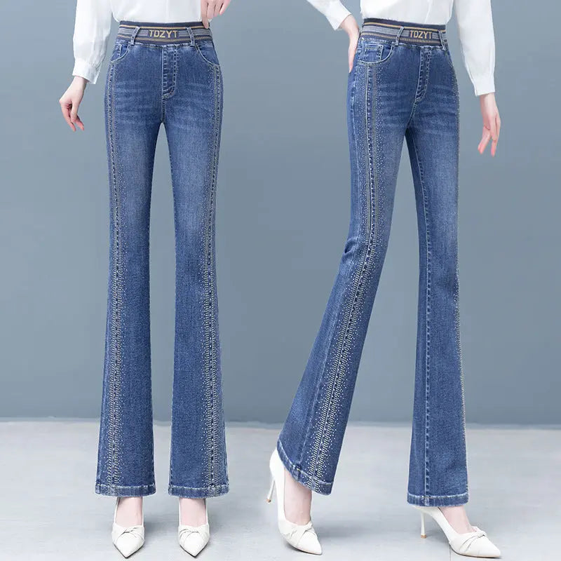 💥Uitverkoop 49% korting💕Damesjeans met hoge taille en elastische klokkende onderbroek