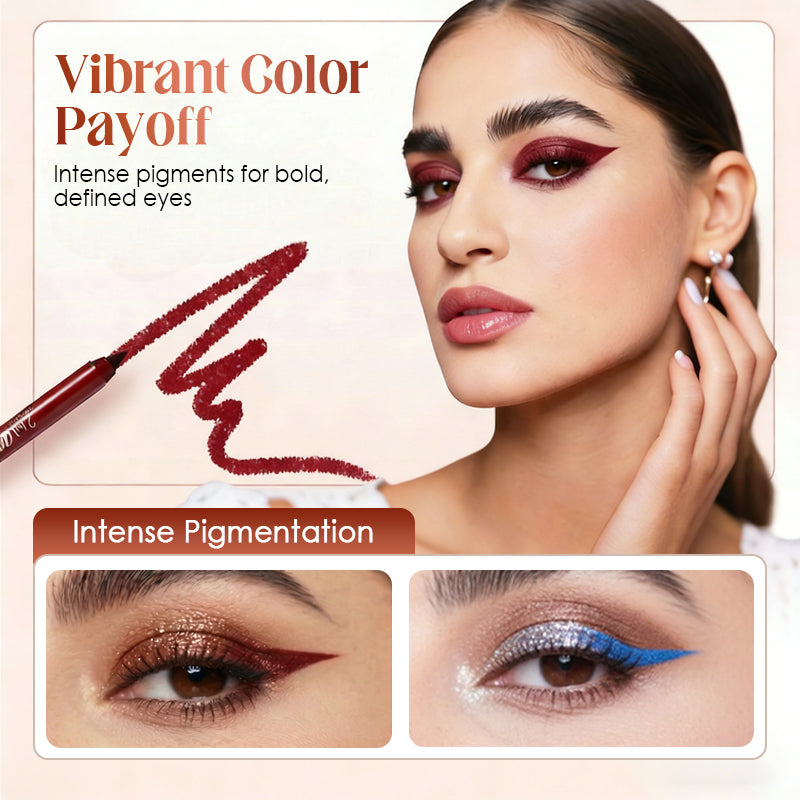 RUIM KLEURENASSORTIMENT - Met een breed scala aan levendige tinten, van klassiek zwart tot gedurfde metallic en felle kleuren, kunt u uw creativiteit de vrije loop laten en uw eyeliner afstemmen op elke stemming, outfit of gelegenheid.