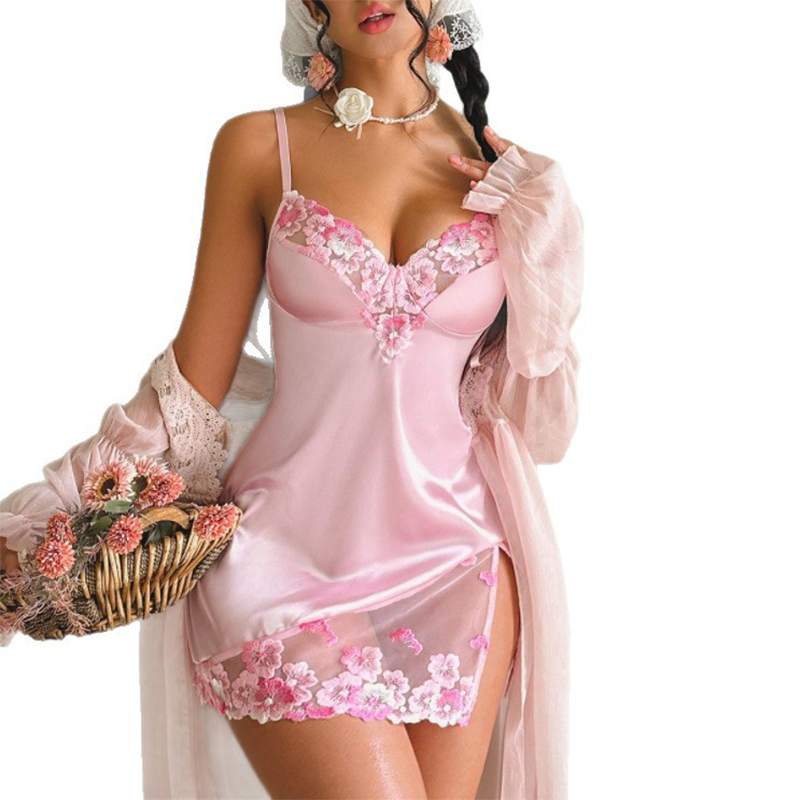 Pakketinhoud: 1 * Damesjurk van satijn met bloemenkant en bijpassende ochtendjas