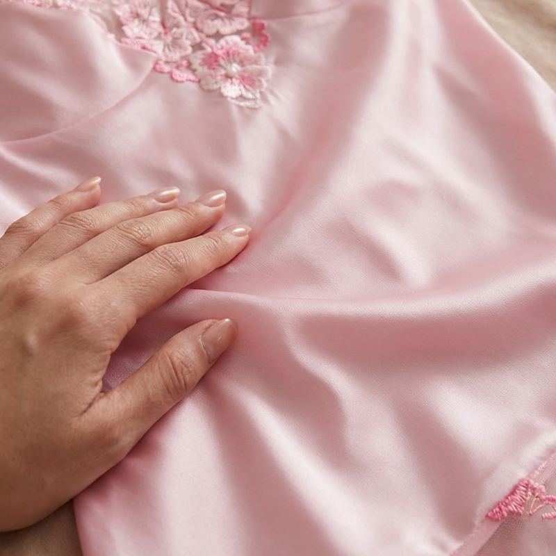 🌸 Bloemenkant en zacht satijn voor een luxe gevoel