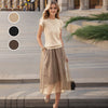 DUBBELLAGIG ONTWERP - De lange rok heeft een dubbellagig ontwerp voor extra bedekking en gemoedsrust. De binnenste laag fungeert als een niet-transparante voering en zorgt voor de veiligheid van je kleding, terwijl de buitenste laag gemaakt is van doorzichtige stof voor een elegante en stijlvolle uitstraling.