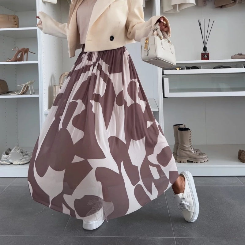 TRENDY PRINTONTWERP - Deze maxirok heeft een modieuze print die een moderne flair toevoegt aan je garderobe, waardoor hij perfect is voor casual uitjes, stranddagen of sociale bijeenkomsten.