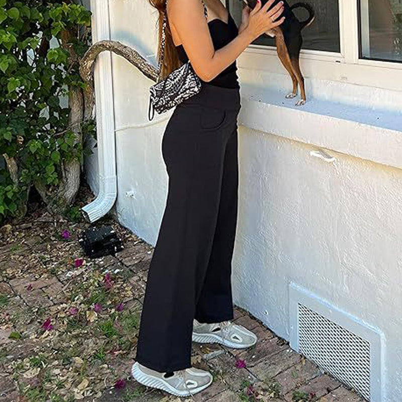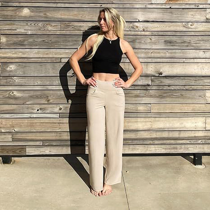 Vrouwen's high waist elastische wide-leg broeken- superstretchy