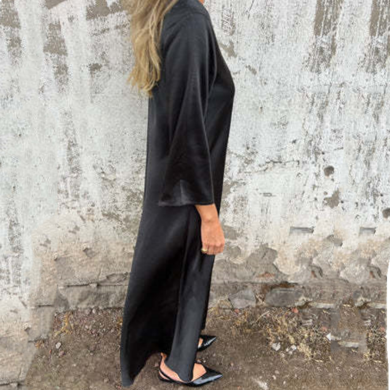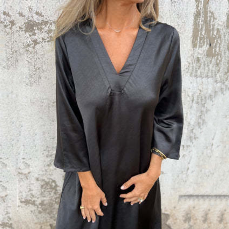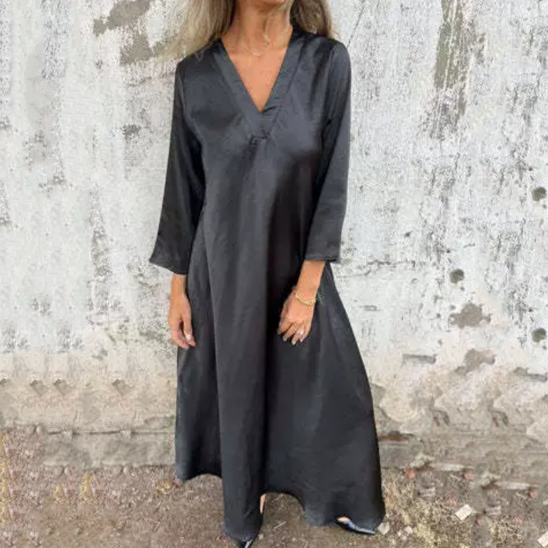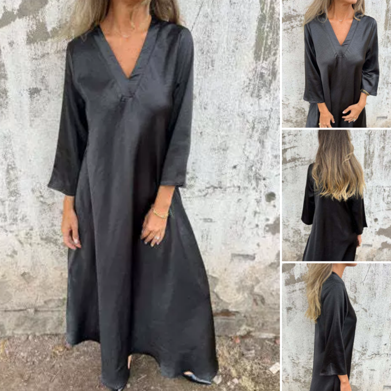 👗Satijnen jurk met V-hals en lange mouwen voor dames 🔥5% korting – Gratis verzending
